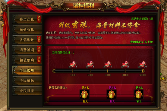 活动说明:活动期间内,使用玄珠碎片达到一定数量可领取对应的返利奖励,使用碎片超过30000更可参与排名获得豪华奖励。