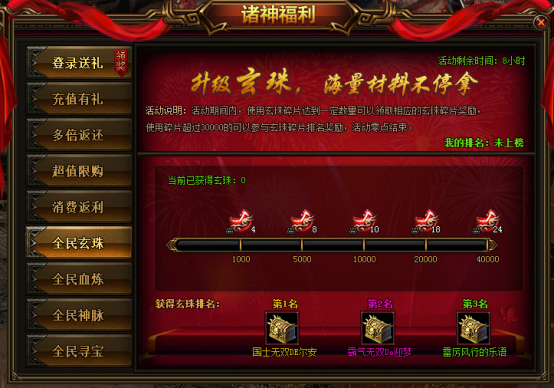 活动说明:活动期间,使用玄珠碎片达到一定数量可以领取相应的奖励,使用碎片超过30000的可以参与玄珠碎片排名奖励,活动零点结束。