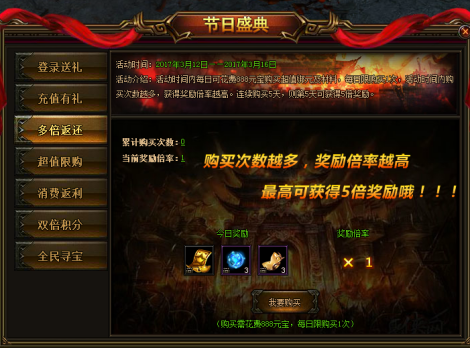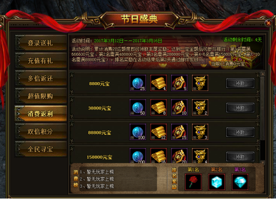 消费8800元宝,额外领取技能领悟丹*25 金砖(大)*4 刷新令*5 龙印碎片*1