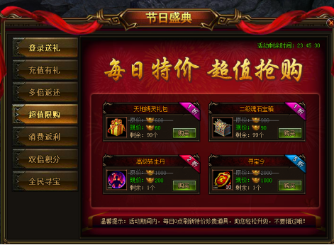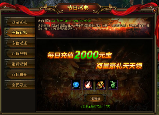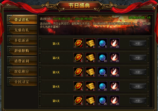 活动内容:活动期间,每天登陆游戏可领取礼包。
